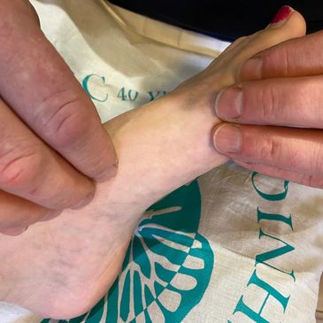 It's a two-part practice. During a session we gently touch specific areas of the feet hands and head that reflect all that we are whilst using a specific attitude of detachment that is the heart of this work and enables us to 'stay out of the way' of our client, which is essential to the session.